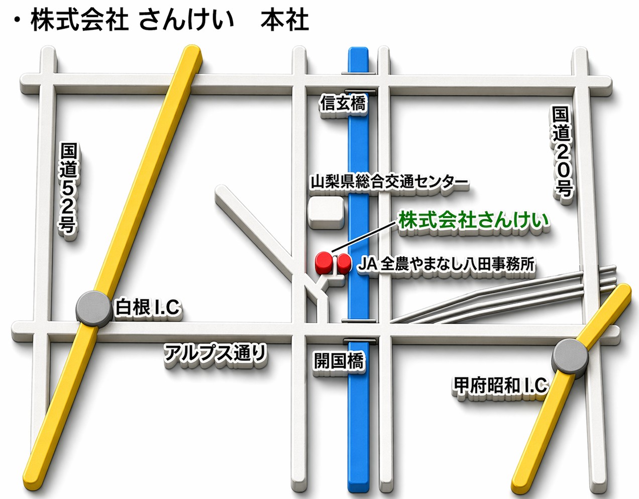| 会社位置 | JA全農やまなし八田事務所付近、地図内の赤いポイント位置 |